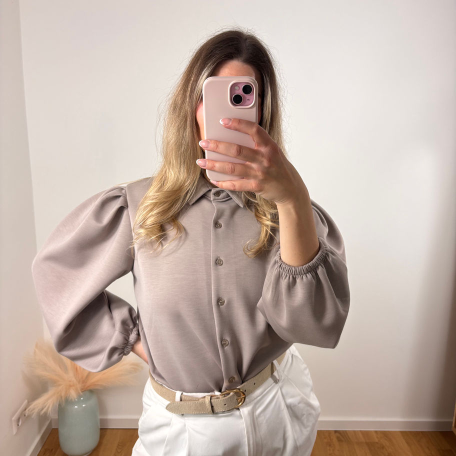 Statement Bluse mit voluminösen Ärmeln. Der cleane Schnitt sorgt für einen zeitlosen Look, während die auffälligen Ärmel dem Outfit sofort das gewisse Etwas verleihen.